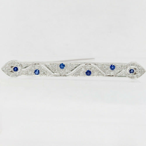 Vintage 18K White Gold Diamond Sapphire Bar Pin