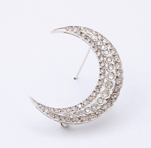 Vintage Diamonds 14K White Gold Crescent Moon Brooch Pin
