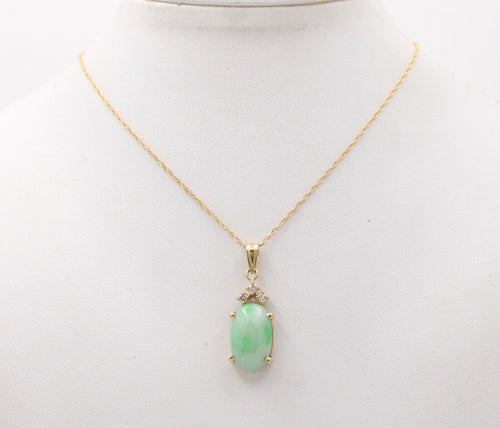 Vintage Jade Diamonds 14K Yellow Gold Pendant and Chain