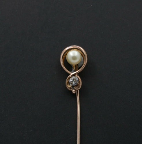 Victorian Diamond Pearl 14K Yellow Gold Stick Pin
