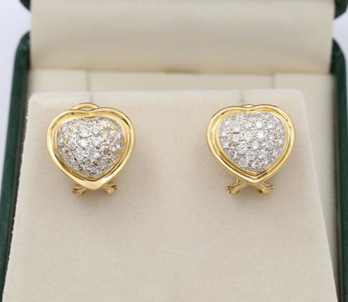 Vintage Heart Diamonds 18K Yellow Gold Earrings