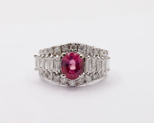 Vintage Pink Sapphire Diamonds 14K White Gold Ring