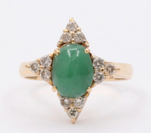 Vintage Jade Diamonds Star 18K Yellow Gold Ring