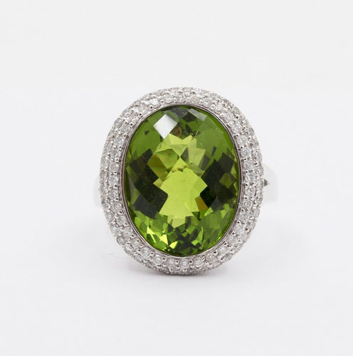 Vintage Peridot Diamonds 14K White Gold Cocktail Ring