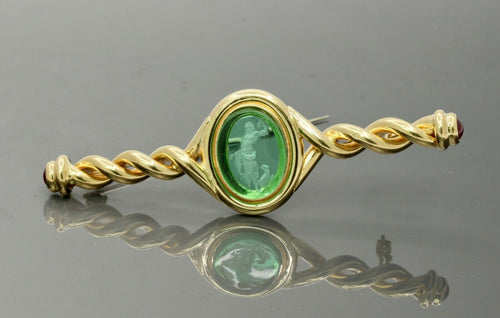 Vintage Italian 18K Yellow Gold Glass Intaglio Pink Sapphire Brooch