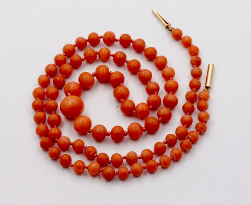 Vintage 14K Yellow Gold Graduated Coral Necklace