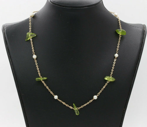 Vintage 14K Yellow Gold Peridot Pearl Necklace