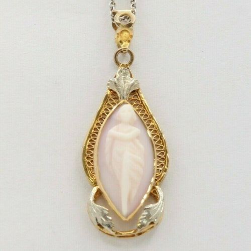 Vintage Ladies Cameo Pendant Carved Coral 10K Yellow White Gold![]()  - Regular price