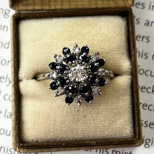 Vintage 14K White Gold Starburst Sapphire Diamond Ring