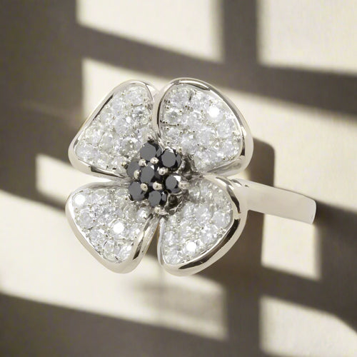 Vintage Four Leaf Clover Sapphires & Diamond Pave 14K White Gold Ring