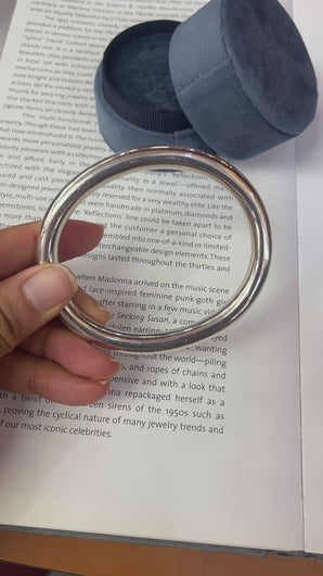 This sleek and sophisticated bangle from Tiffany & Co. is crafted in sterling silver (.925) and features a timeless, minimalist design. Its classic oval shape and smooth round tube construction make it a versatile piece that exudes elegance. A perfect addition to your personal collection, this bangle is a statement of refined taste and enduring style.
