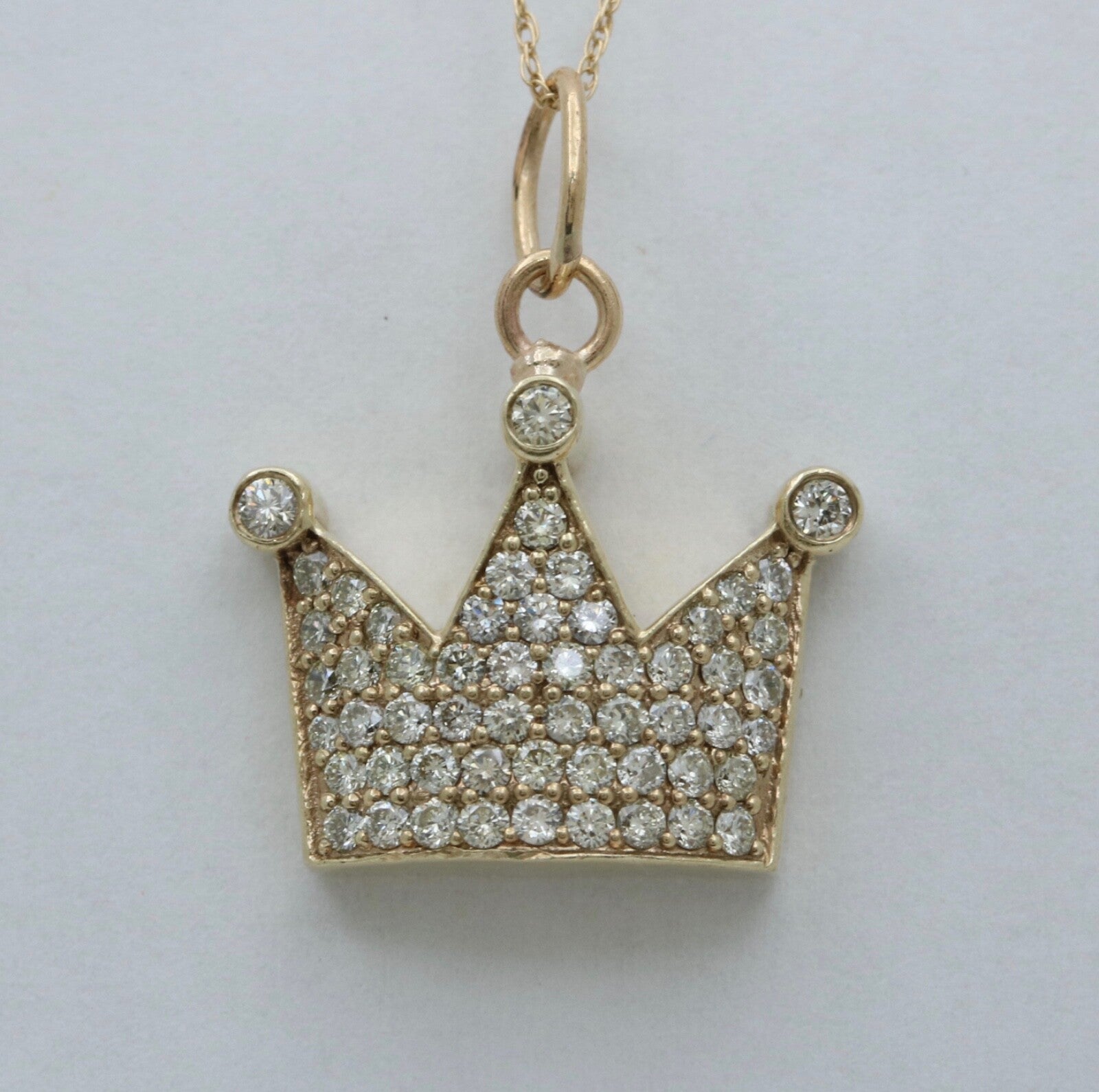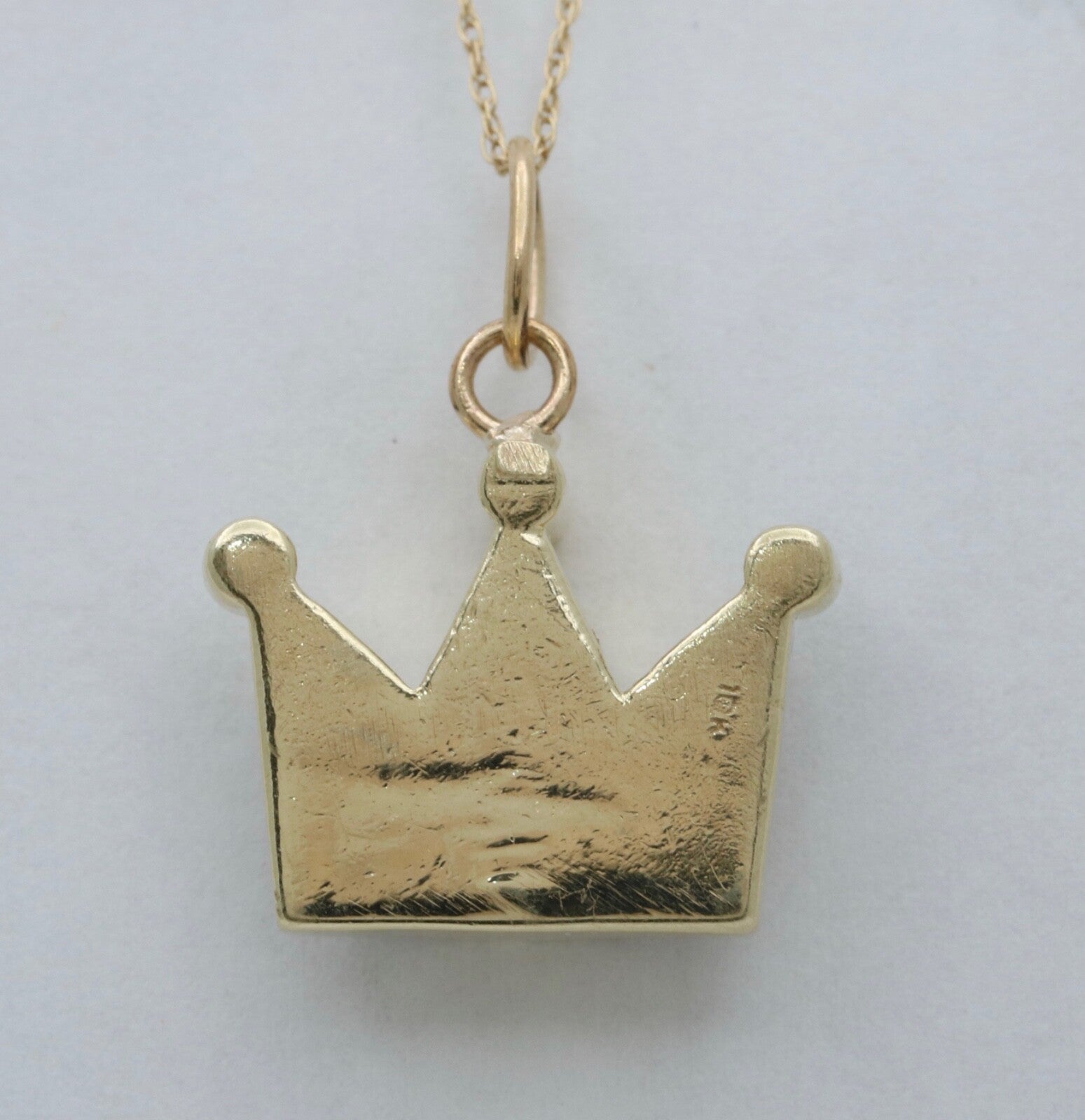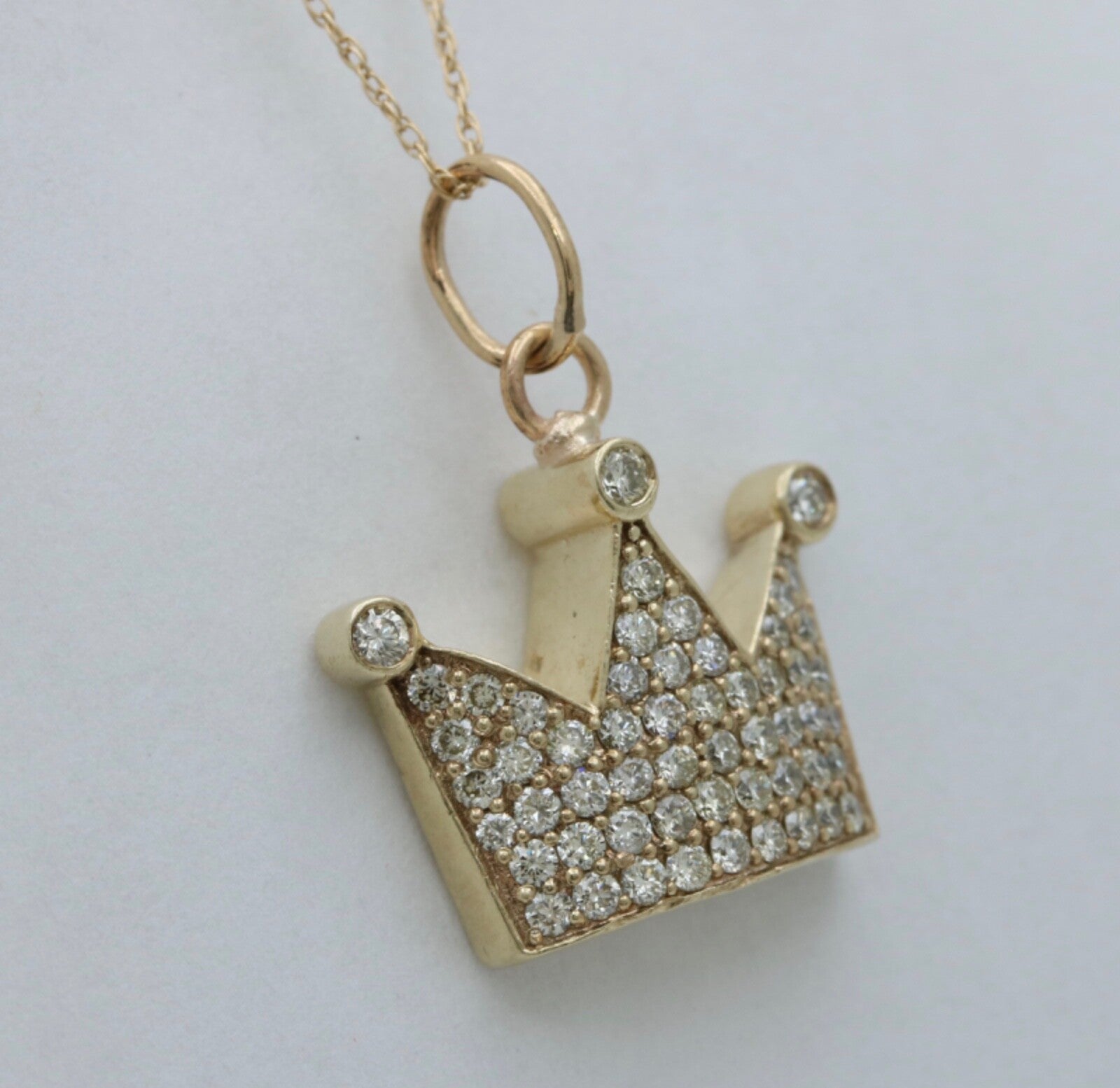 Gleam and sparkle with The Striking 10K Yellow Gold Diamond Crown Pendant, fit for royalty! This dazzling necklace commands attention with its regal design of a crown pendant dripping in diamonds. The 10K yellow gold band ensures lasting durability while the genuine diamonds reflect light brilliantly. Wear this pendant to feel like a king/queen with the striking design and glamorous diamonds to catch the eye of everyone in the room. Add some majesty to your jewelry collection and treat yourself to this crown jewel today!