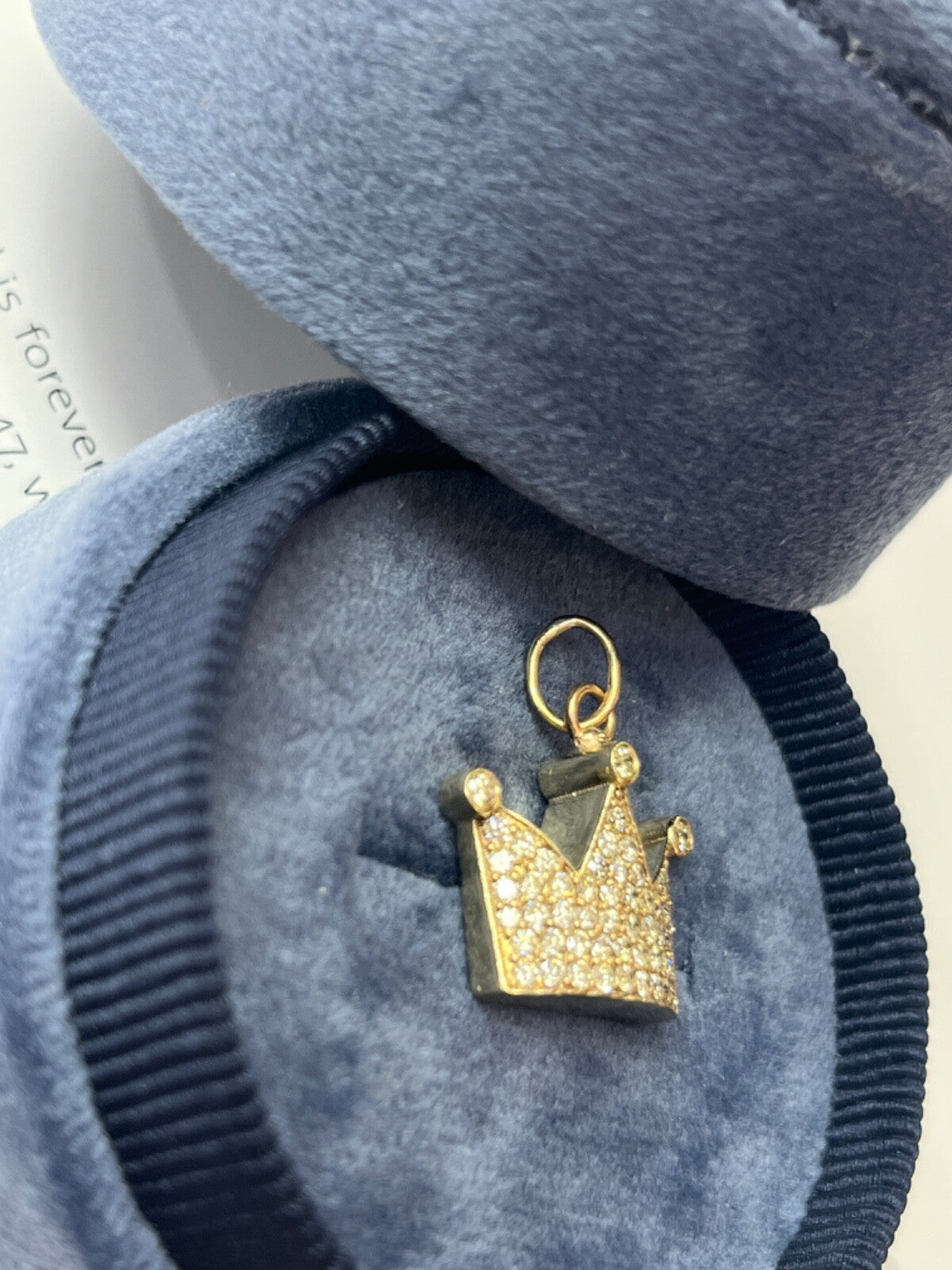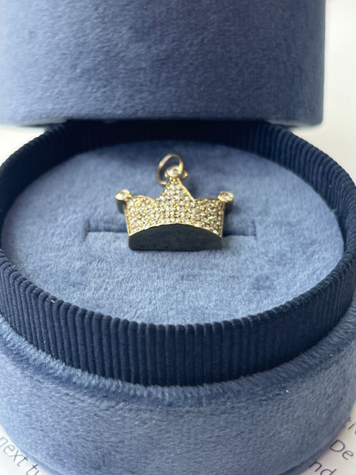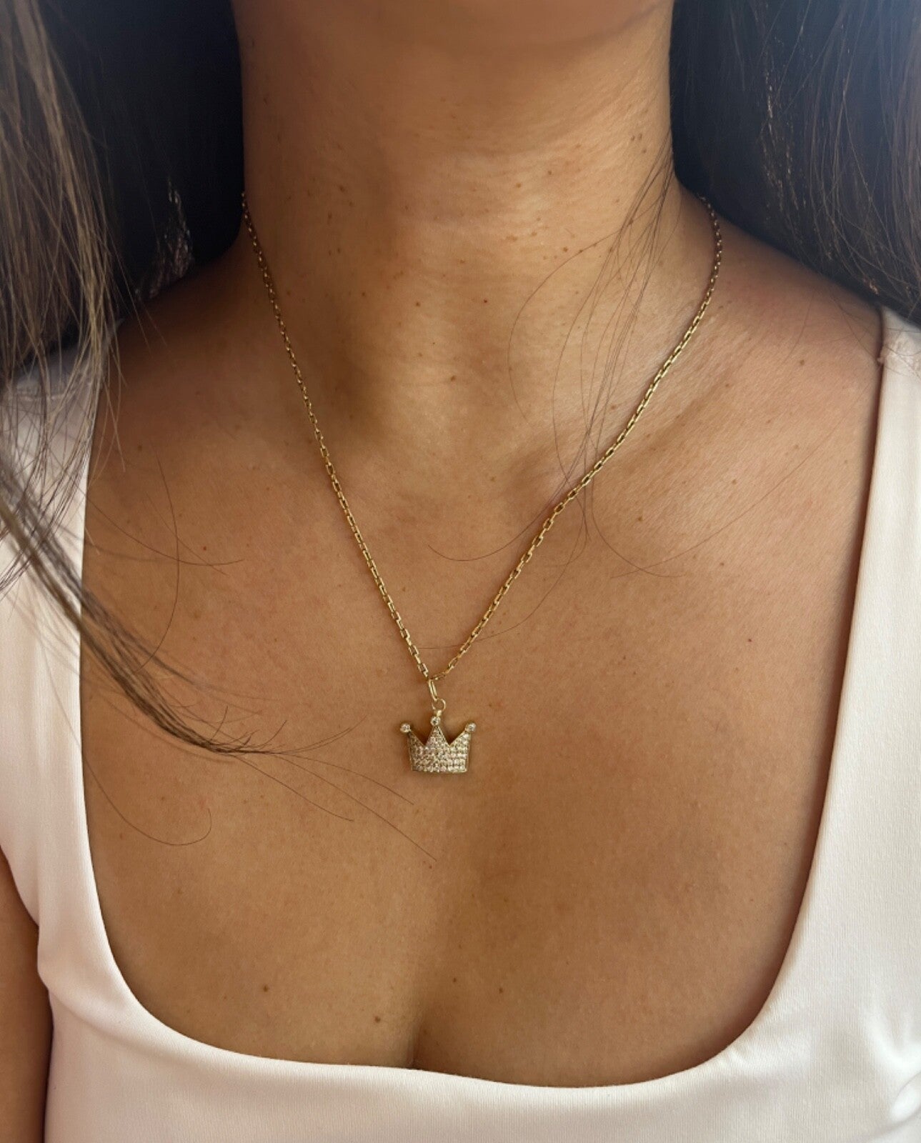 Gleam and sparkle with The Striking 10K Yellow Gold Diamond Crown Pendant, fit for royalty! This dazzling necklace commands attention with its regal design of a crown pendant dripping in diamonds. The 10K yellow gold band ensures lasting durability while the genuine diamonds reflect light brilliantly. Wear this pendant to feel like a king/queen with the striking design and glamorous diamonds to catch the eye of everyone in the room. Add some majesty to your jewelry collection and treat yourself to this crown jewel today!