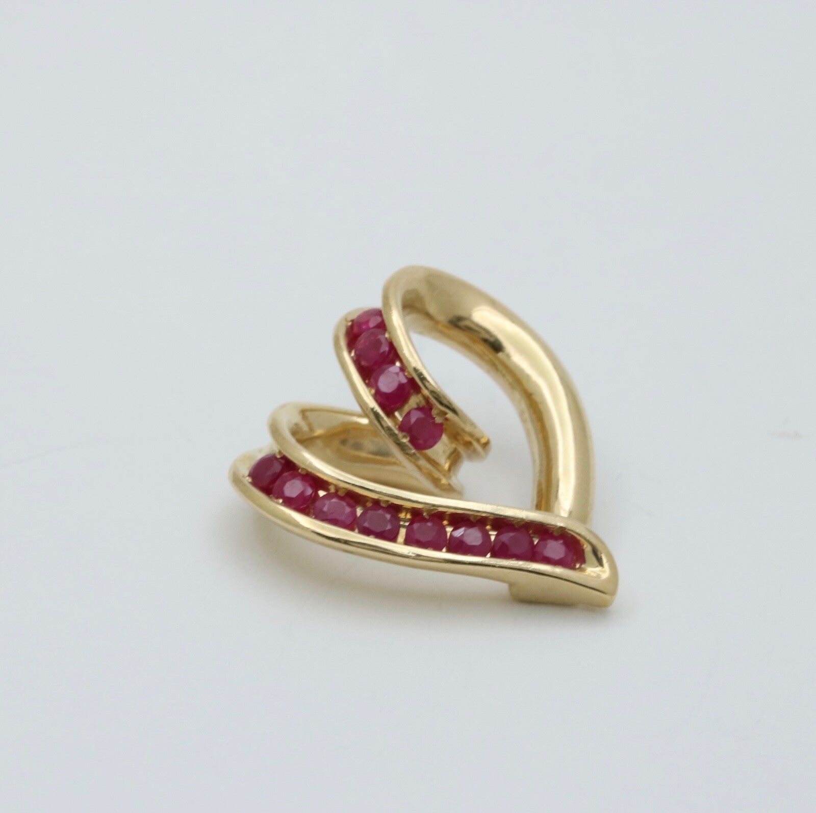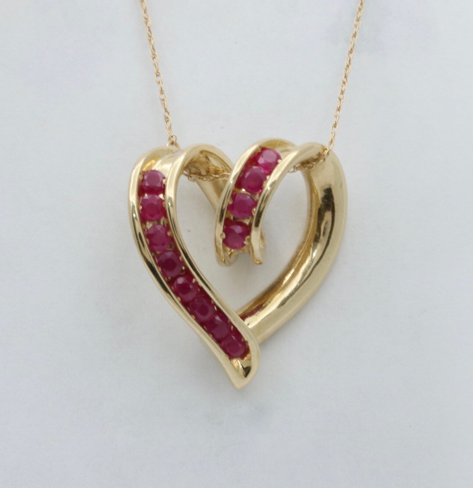 Fall in love all over again with this stunning reversible 14K yellow gold heart pendant that lets you change your look on a whim. On one side, a brilliant round diamond sparkles at the center of an elegant open heart design formed of lustrous 14K gold. Flip it over, and the heart frames a dazzling ruby whose deep cranberry hue evokes romance and passion. Wear the diamond side for an elegant everyday look, or turn it to the ruby for a pop of rich color. With two gorgeous gems in one pendant, you'll never get tired of declaring your timeless devotion. This versatile two-in-one necklace makes a meaningful gift for your beloved - let your heart guide you to the perfect side to show the world.